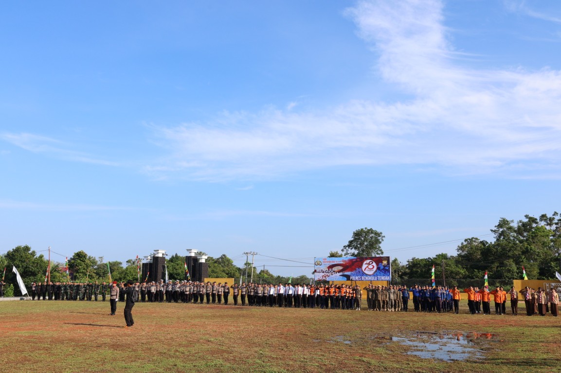 Bengkulu Tengah – BPBD menghadiri undangan Upacara Hari Bhayangkara ke-78 Tahun 2024 yang diadakan Polres Bengkulu Tengah di Halaman Pendopo Bukit Kandis Pemkab Bengkulu Tengah, Karang Tinggi pada Senin (01/07/2024). BPBD mengirimkan pasukan upacara tersebut yaitu 1 pleton (1 danton dan 21 pasukan). Acara ini juga di hadiri tamu undangan dari unsur Forkopimda, pimpinan dan anggota DPRD Kabupaten Bengkulu Tengah, Pj. Bupati Bengkulu Tengah, Sekda, Kepala OPD serta undangan lainnya. Acara selanjutnya berupa pembagian piagam penghargaan, penampilan tari kreasi dan taekwondo, serta syukuran dan doa bersama.
