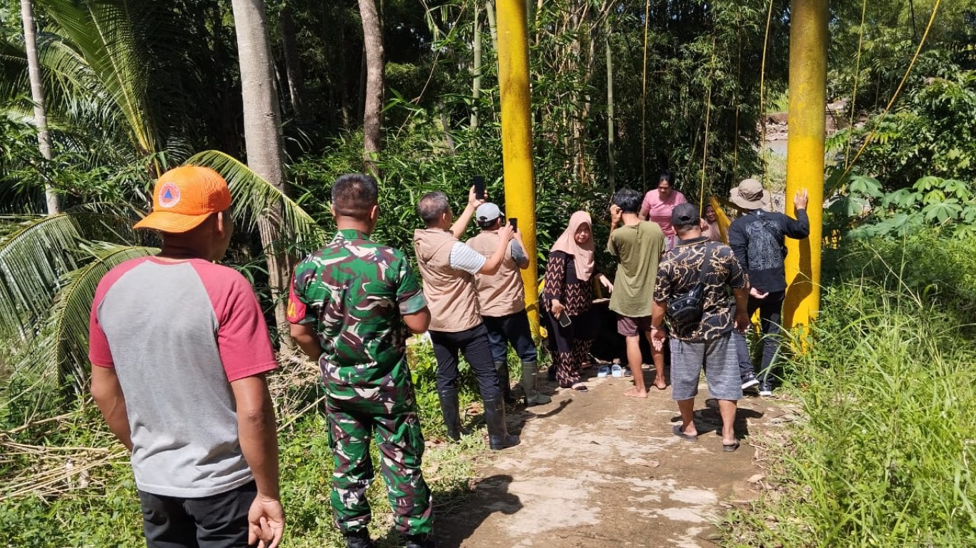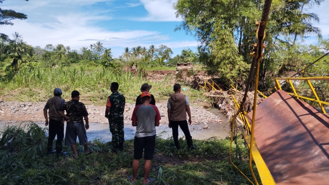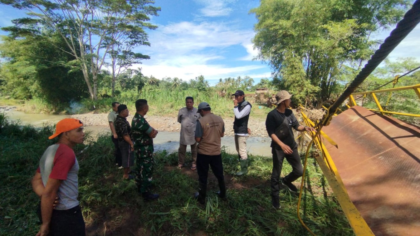 Bengkulu Tengah – Hujan dengan durasi lama dan intensitas hujan yang tinggi di daerah hulu sungai pada Kamis (17/04/2025) sekitar pukul 18.00 WIB, terjadi banjir bandang yang menyebabkan kerusakan jembatan (berdekatan pasar) di Kelurahan Taba Penanjung, Kecamatan Taba Penanjung. Jembatan tersebut digunakan warga sebagai akses utama penyeberangan menuju sawah dan kebun, namun akibat debit air sungai tinggi yang menghantam jembatan hingga rusak dan tidak bisa diakses warga untuk dilewati. Setelah mendapat informasi kejadian, BPBD Kab. Bengkulu Tengah segera menurunkan tim satgas menuju lokasi kejadian untuk melaporkan kondisi terkini dan pendataan kejadian banjir. Pada Jumat (18/04/2025), Kalaksa BPBD Kabupaten Bengkulu Tengah, Harmen Junaidi, S.T., M.AP., beserta DPUPR Kabupaten Bengkulu Tengah berkoordinasi meninjau langsung lokasi jembatan yang putus untuk mengukur dan melihat tingkat kerusakan jembatan akibat banjir bandang tersebut serta meninjau kondisi lokasi terdampak banjir dan mengukur kerusakan yang ditimbulkan hingga dapat diperkirakan besaran kerugian akibat bencana. BPBD dan DPUPR Kabupaten Bengkulu Tengah melaporkan hasil tinjauan ke Bupati, Wakil Bupati dan Sekda untuk menentukan tindaklanjut kebijakan Pemkab Kabupaten Bengkulu Tengah selanjutnya.