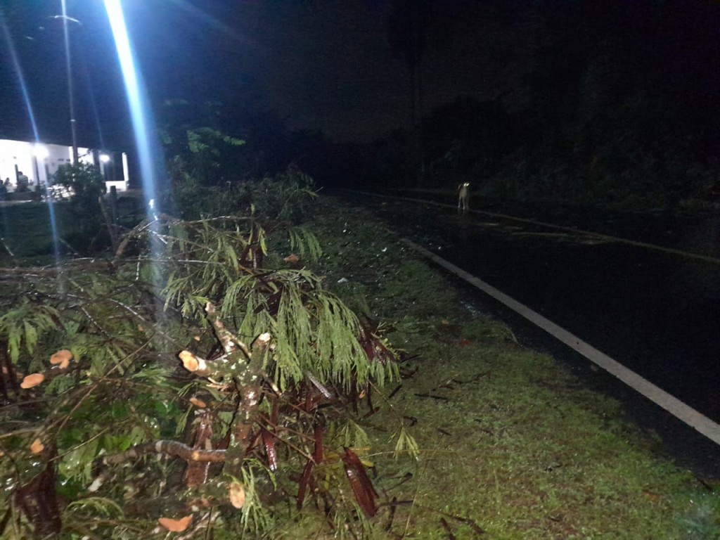 Bengkulu Tengah – Adanya hujan deras disertai angin kencang yang melanda wilayah Kecamatan Semidang Lagan menyebabkan terdapat 1 titik lokasi kejadian pohon tumbang di Jalan Lintas Desa Lagan – Air Sebakul, Kecamatan Taba Penanjung, Kabupaten Bengkulu Tengah pada Kamis (27/02/2025). Pohon yang tumbang melintang di tengah badan jalan dan menghadang lalulintas. Setelah mendapat informasi kejadian, BPBD Kab. Bengkulu Tengah menurunkan tim satgas menuju lokasi kejadian untuk segera dilakukan penanganan berupa pemotongan pohon menggunakan chainsaw serta pembersihan material sisa pohon tumbang. Penanganan evakuasi pohon tumbang yang saat ini sudah selesai dan arus lalulintas berjalan normal kembali dan nihil korban jiwa. Adapun pada hari yang sama terdapat pula kejadian banjir sehingga gorong-gorong di Desa Lagan Bungin tersumbat. Tim Satgas BPBD standby di lokasi untuk siaga, karena gorong-gorong yang tersumbat dapat menyebabkan air sungai naik menggenang dan berarus cukup deras mencapai ke jalan raya, hingga menyulitkan pengendara bermotor untuk melintas, dan air akan surut setelah hujan reda.