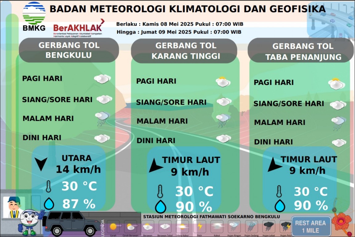 PRAKIRAAN CUACA JALUR TOL BENGKULU-TABA PENANJUNG
