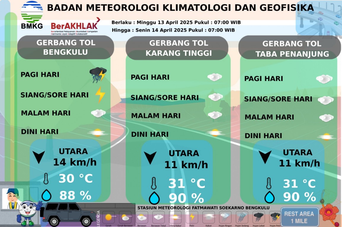 PRAKIRAAN CUACA JALUR TOL BENGKULU-TABA PENANJUNG