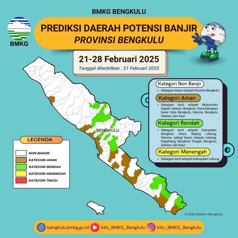 Prediksi Daerah Potensi Banjir Provinsi Bengkulu (21-28 Februari 2025)