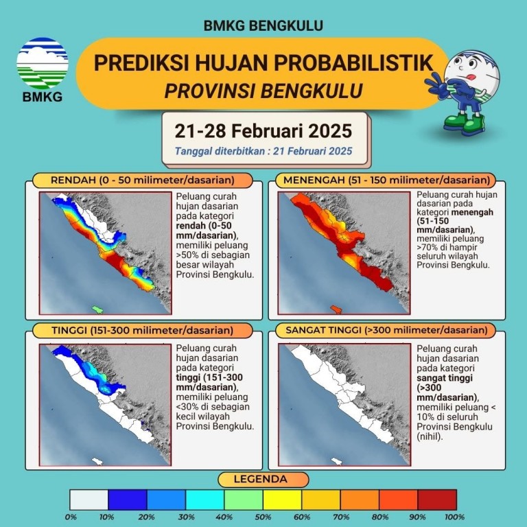 Prediksi Hujan Probabilistik Provinsi Bengkulu (21-28 Februari 2025)